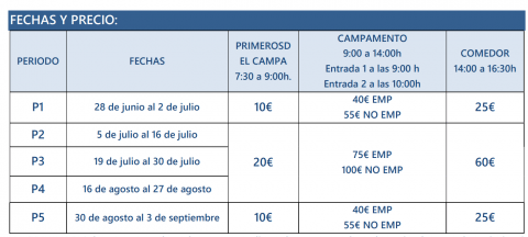 fechas y precios campamentos verano 2021