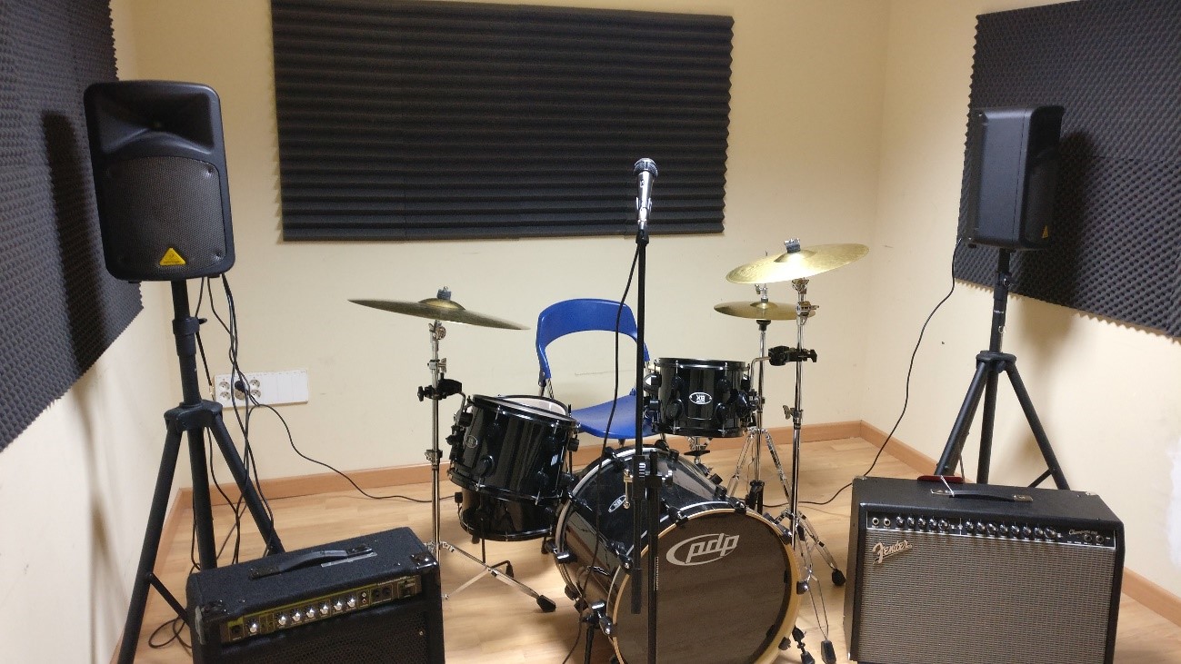 La sala cuenta con amplificadores de guitarra y bajo, batería, altavoces y micrófonos, además la instalación ha sido recientemente insonorizada.