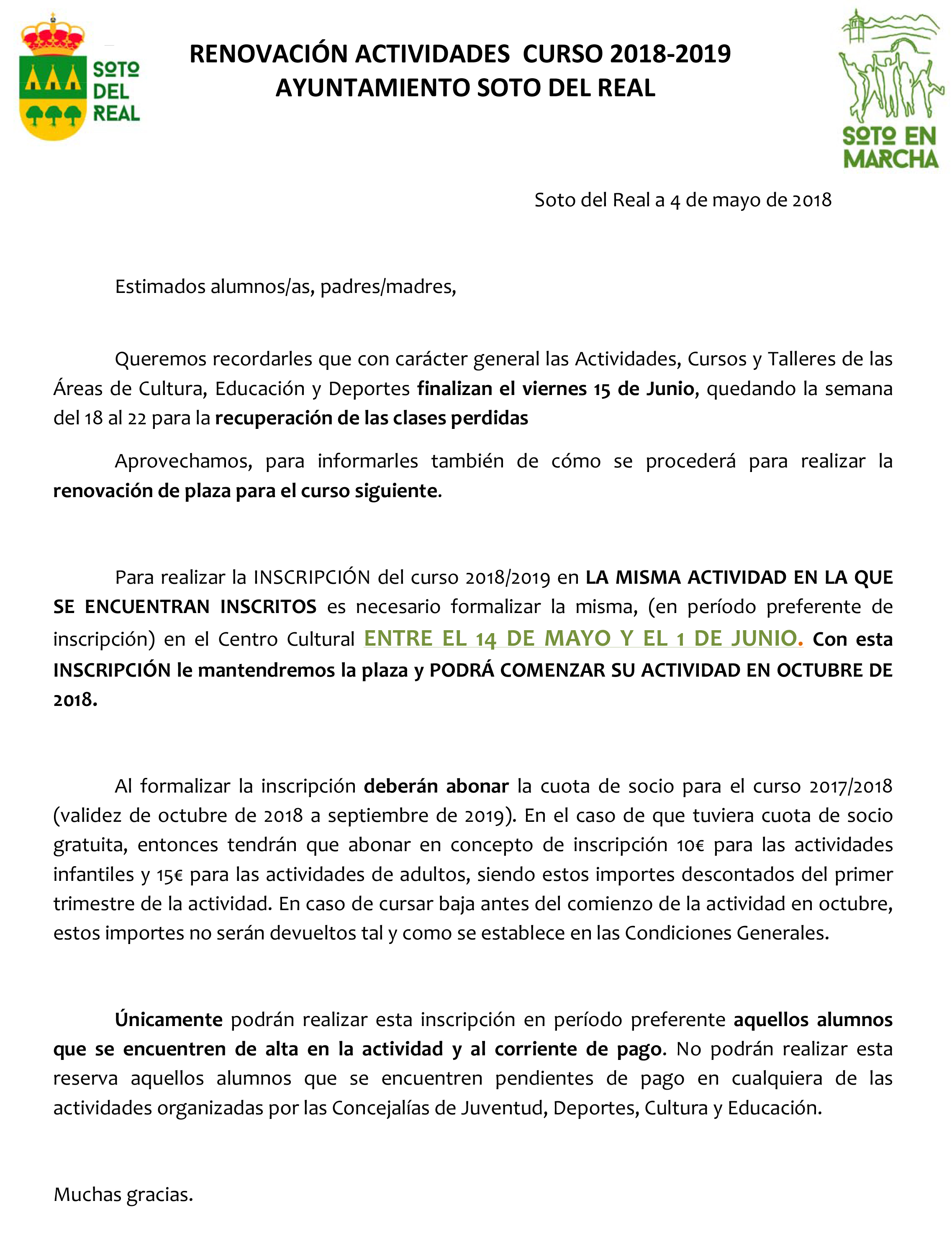 Publicado anuncio en el BOE sobre la plaza de Ordenanza, se abre el plazo de inscripción que durará del 18 de mayo al 14 de junio, ambos incluidos. La inscripción se debe hacer en instancia normalizada a través de registro de entrada del Ayuntamiento registro@ayto-sotodelreal.es , en la forma establecida en las bases de convocatoria.