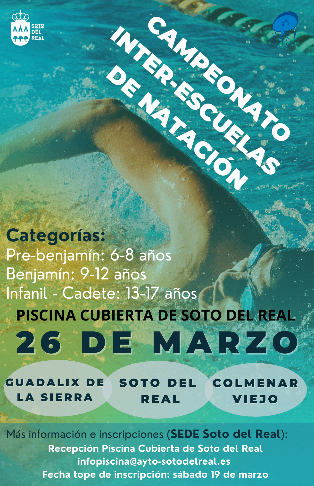 INSCRIPCIONES: hasta el 19 de marzo en recepción de la piscina o mediante email a inforpiscina@ayto-sotodelreal.es