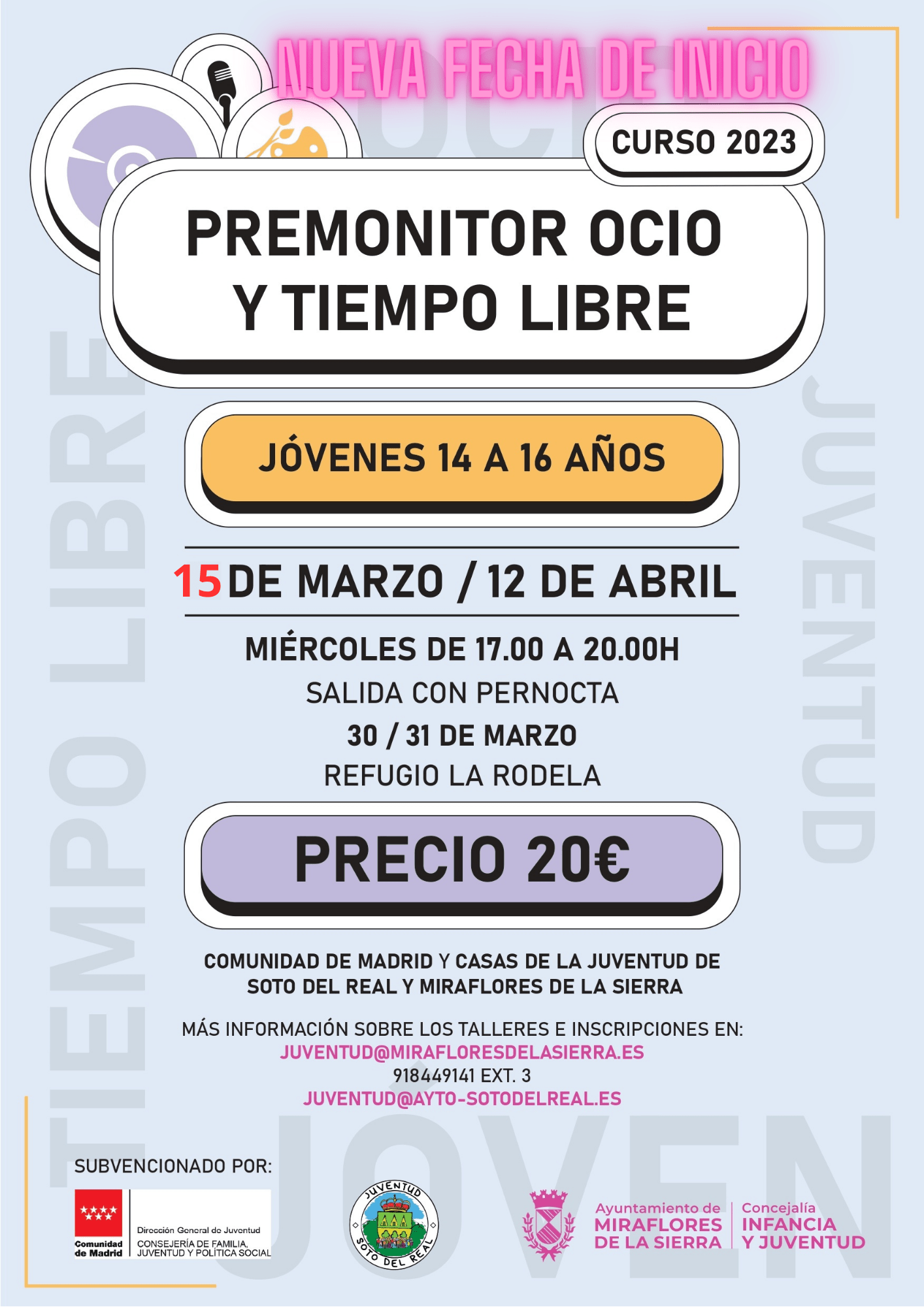 MÁS INFORMACIÓN E INSCRIPCIONES: a través de este enlace o a través del correo juventud@ayto-sotodelreal.es