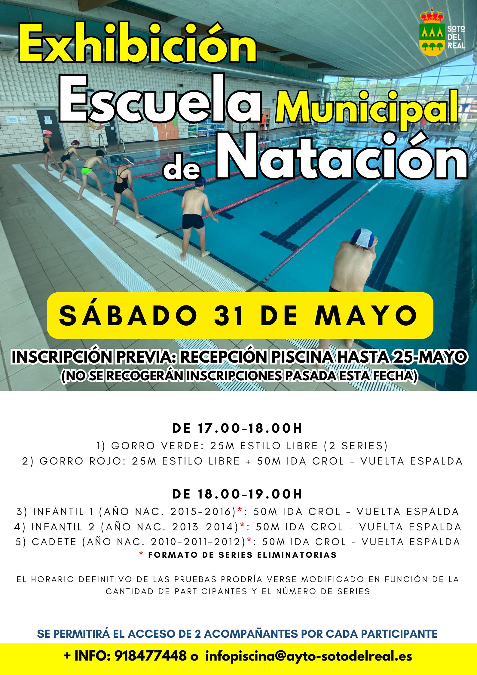 INSCRIPCIÓN: Inscripciones hasta el 25 de mayo en la Piscina Cubierta o a través del correo infopiscina@ayto-sotodelreal.es