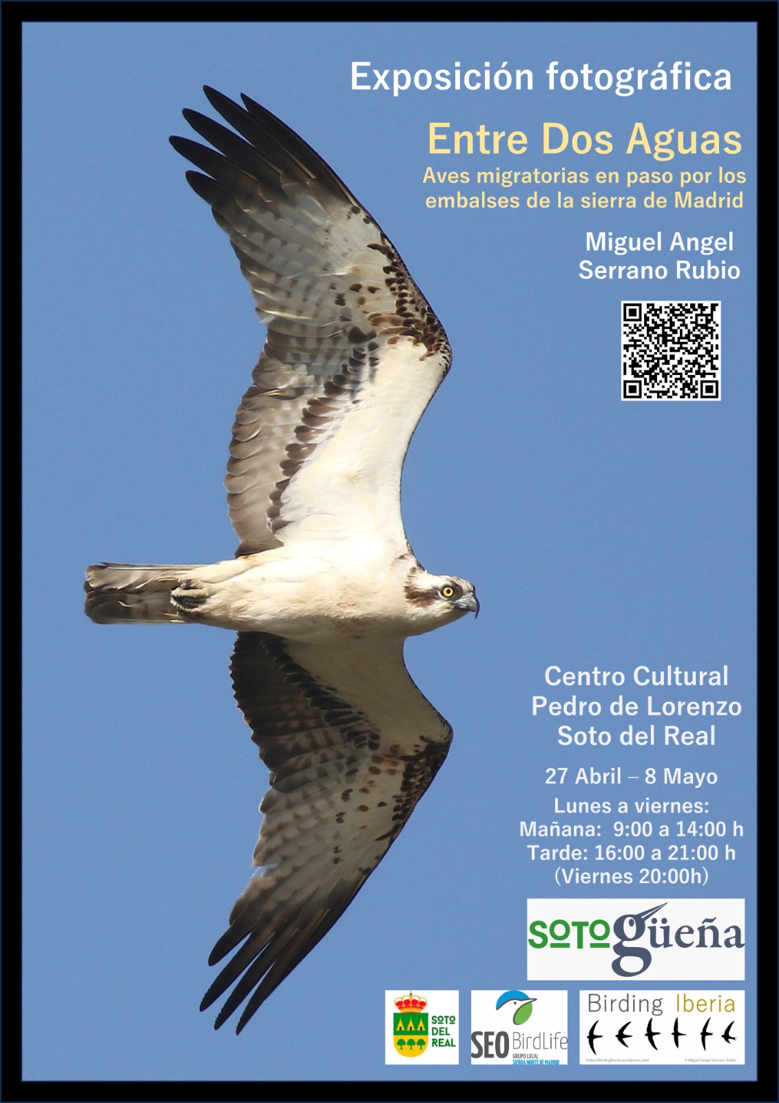 Exposición que incluye 22 fotografías de 50×70 cm en las que las protagonistas son las aves migratorias en paso por Madrid. Se incluye una selección de aves migratorias que se pueden observar en los embalses de la sierra durante los pasos, algunas de ellas poco frecuentes y ocasionales.