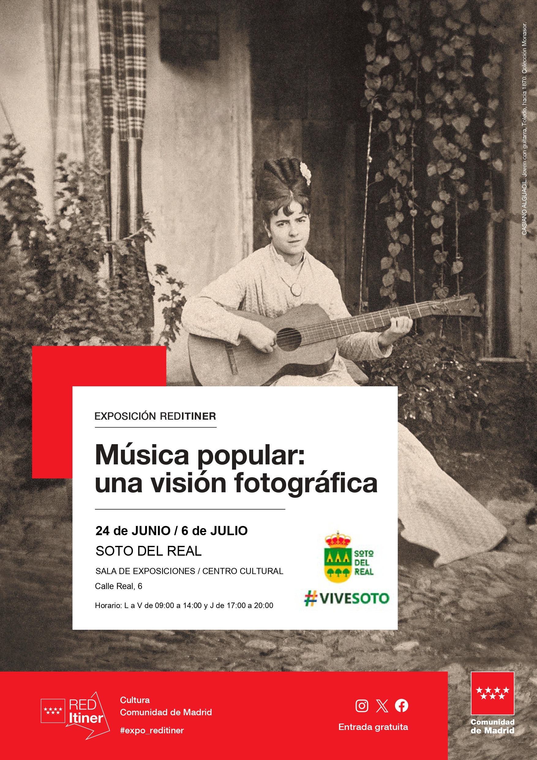 Esta exposición pretende mostrar una parte de la historia de la fotografía tradicional española a lo largo de un siglo acotado cronológicamente entre los días del daguerrotipo y la víspera de la transición democrática. Un siglo en el que las músicas populares alcanzaron un notable reconocimiento social y cultural motivado por las reivindicaciones identitarias del Romanticismo y el trabajo pionero de músicos e intelectuales como Perfecto Feijoo, Agapito Marazuela, Menéndez Pidal, Manuel de Falla, Federico García Lorca, los miembros de las Misiones Pedagógicas de la Segunda República, Julio Caro Baroja y las mentes más preclaras que inspiraron los Coros y Danzas de la Sección Femenina.