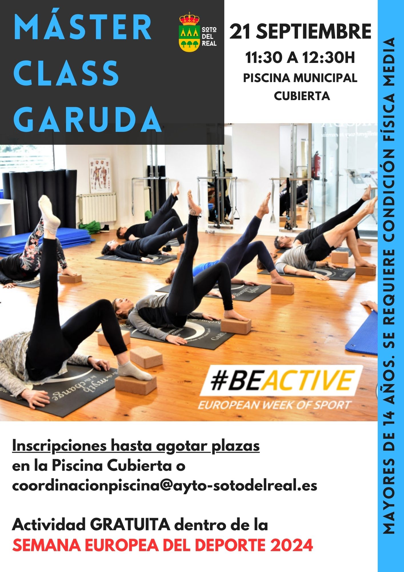 INSCRIPCIONES: Gratuitas, hasta completar aforo en la Piscina Cubierta o a través del correo infopiscina@ayto-sotodelreal.es PLAZAS LIMITADAS.
