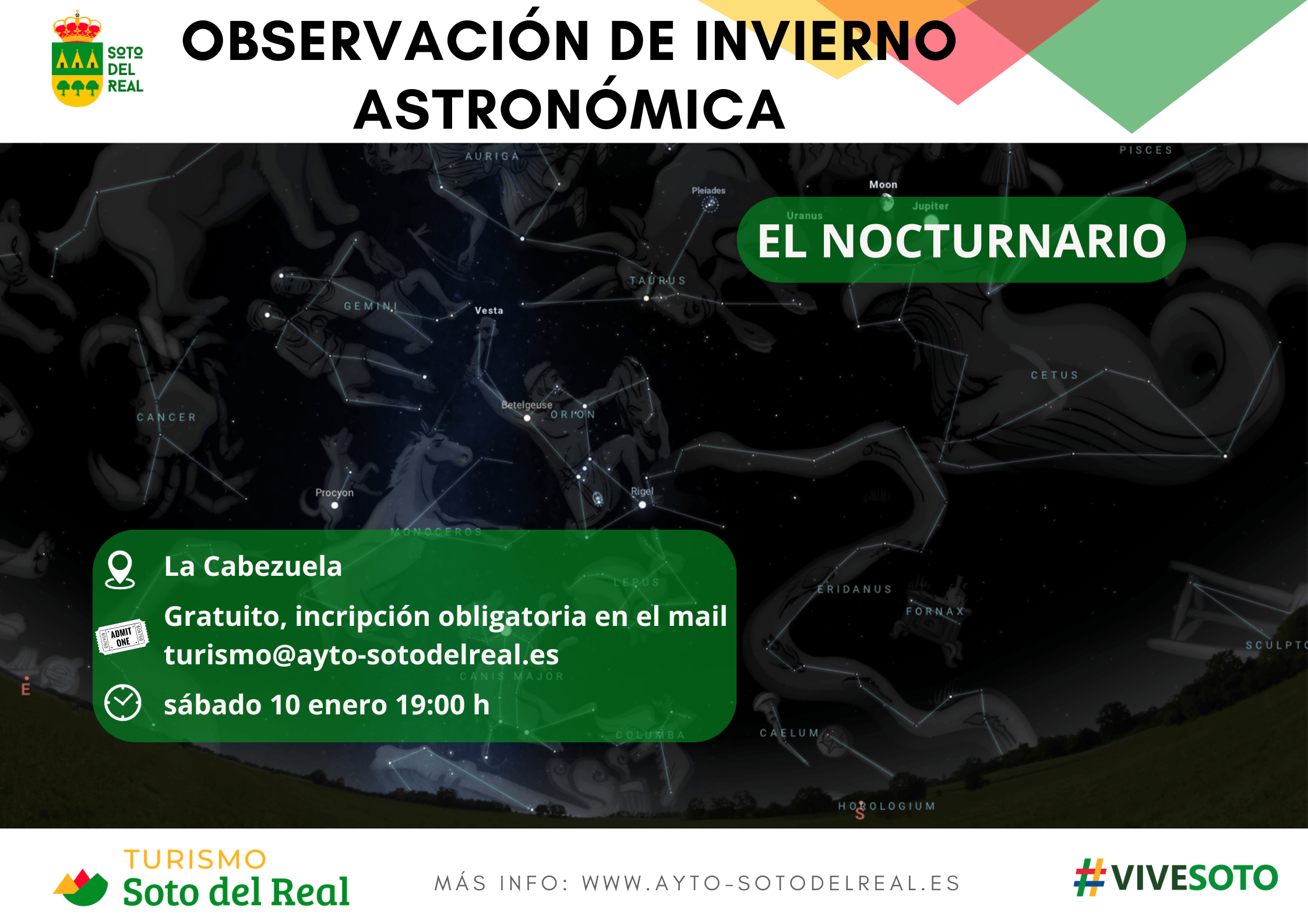 De nuevo nuestros amigos de El Nocturnario nos ofrecen una experiencia inolvidable de observación astronómica. Esta vez con un cielo de invierno, que nos hará descubrir nuevas costelaciones y posiciones de las estrellas como nunca antes las habíamos observado.
