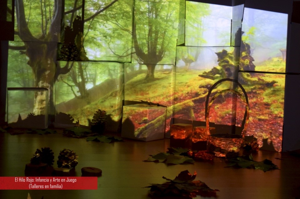 Instalación sensorial de juego. Un bosque que se cuela en una sala. Proyectado en cajas blancas que invitan a transformarlo.