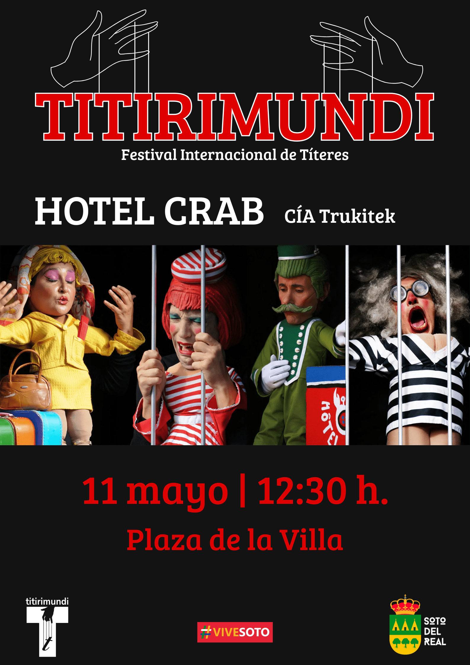 Hôtel Crab es un espectáculo de marionetas para públicos de todas las edades, una comedia llena de sorpresas, pasiones y malentendidos en un tiempo que no es real ni actual. Una atmósfera onírica voluntariamente artificial para provocar en el espectador una mirada curiosa.