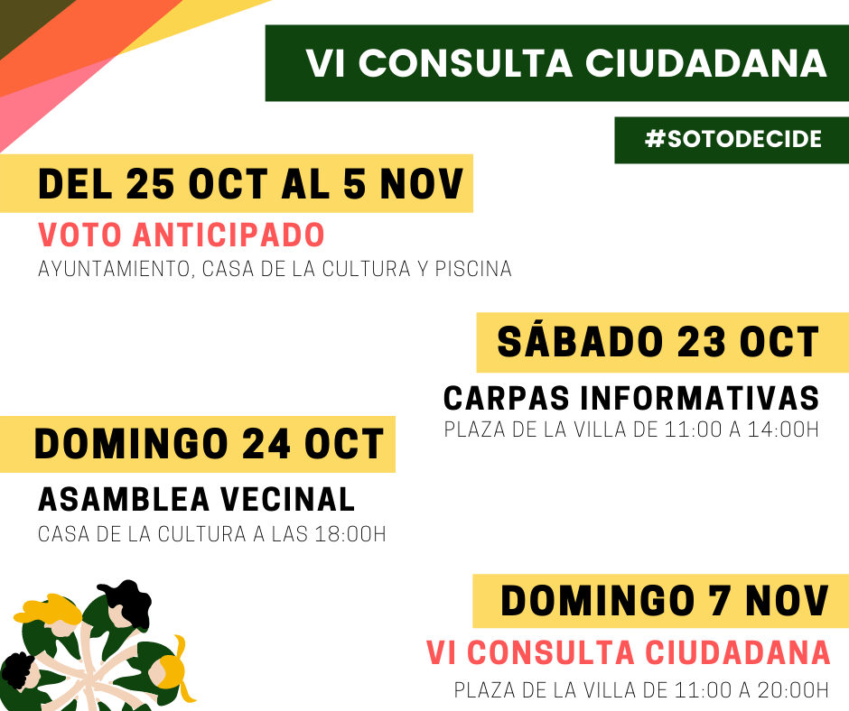 VOTO ANTICIPADO: 25 octubre al 5 de noviembre en el Ayuntamiento, Centro Cultural y Piscina.