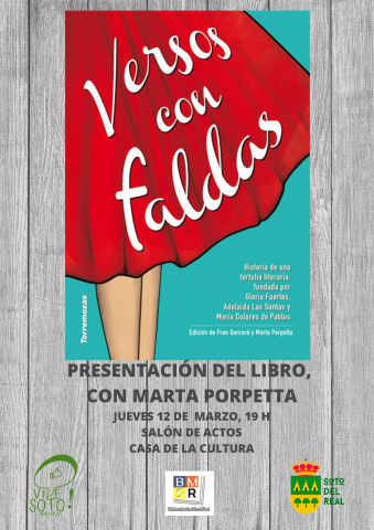 PRESENTACIÓN DEL LIBRO VERSOS CON FALDAS, CON ANA PORPETTA 12 de marzo 19 h Salón de actos Entrada libre hasta completar aforo Todas las edades MÁS INFORMACIÓN EN biblioteca@ayto-sotodelreal.es 91 8480114
