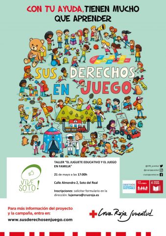 TALLER “EL JUGUETE EDUCATIVO Y EL JUEGO EN FAMILIA” 21 de mayo a las 17:00h Calle Almendro 2, Soto del Real Inscripciones: solicitar formulario en la dirección: lujemaro@cruzroja.es