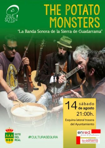 The Potato Monsters es un grupo de referencia de música celta y folk americana. Presentan una mezcla de temas tradicionales y originales de sabores irlandeses y americanos. LUGAR: Trasera del Ayuntamiento con calle Real. PÚBLICO: Todos los públicos. PRECIO: gratuito.