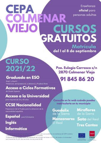 INSCRIPCIÓN CURSOS PERSONAS ADULTAS CEPA COLMENAR VIEJO