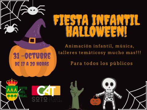 ULTIMA HORA: Ante las inclemencias meteorológicas se traslada la fiesta infantil del CAT al Polideportivo. Disfruta en familia de la tarde más terrorífica del año. Animación infantil, música, talleres temáticos y mucho más. LUGAR: Polideportivo; HORA: 17:00 a 20:00 h; PÚBLICO: a partir de 3 años; PRECIO: gratuito;