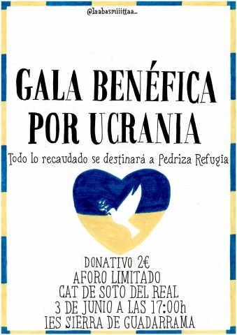 CONCIERTO BENÉFICO POR UCRANIA Viernes, 3 de junio de 2022 - 17:00 h. Organiza IES Sierra de Guadarrama Actúan alumnos, alumnas y el coro del IES