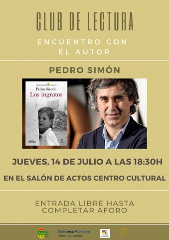 Este jueves 14 de julio tendremos un encuentro con el autor Pedro Simón en el Club de Lectura de la Biblioteca Municipal. CUÁNDO: 14 de julio a las 18.30h DÓNDE: Salón de actos del Centro Cultural Entrada libre hasta completar aforo