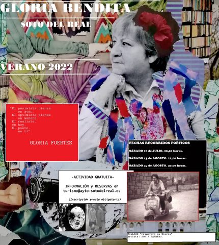 Paseos con Gloria Ruta poética teatralizada 16 de julio y 27 de agosto a las 20h 13 de agosto a las 22:00 h Salida de la plaza y recorrido por diferentes zonas del municipio