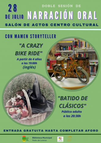 28 de julio en el Salón de Actos del Centro Cultural Doble sesión de cuentacuentos: infantil en inglés y adultos en castellano Por Mamen Storyteller A las 19:00h. A Crazy Bike Ride: A Mrs Clementine le encanta inventar, hacer amigos, el deporte y viajar. Un día decidió recorrer el mundo entero en bicicleta, visitó lugares […]