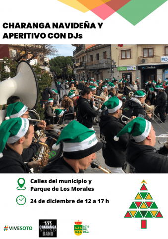LUGAR: Calles del municipio y parque de los Morales; DÍA: 24 de Diciembre; HORA: 12:00 a 17:00 horas. La charanga Sound Band nos acompañará por diferentes lugares del municipio dinamizando parques y plazas con un repertorio musical dirigido a todos los públicos. Para terminar el recorrido aperitivo con DJs en el parque de los Morales.