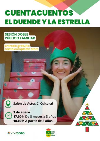 LUGAR: Salón de Actos Centro Cultural DÍAS: 3 enero; HORA: 17:00 h primera sesión para bebés (hasta 3 años) y a las 18:00h segunda sesión para niños a partir de 3 años; PRECIO: gratuita hasta completar aforo; PÚBLICO: familiar;