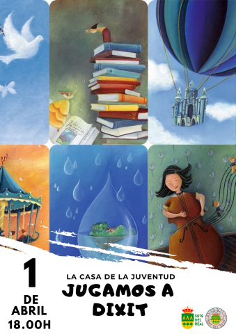 LUGAR: Casa de la Juventud ; DÍA: 1 de abril; HORA: 18:00 h; PÚBLICO: 11 a 17 años; INSCRIPCIONES: juventud@ayto-sotodelreal.es Dixit : Jugar , jugar y jugar. Un juego de mesa diseñado para disfrutar de una tarde diferente en la mejor compañía.