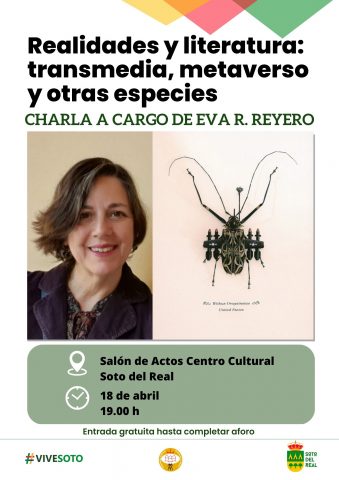 DÍAS: 18 de abril de 2023; HORARIO: 19:00 h. LUGAR: Centro Cultural, salón de actos; PÚBLICO: Público general; ENTRADA: gratuita hasta completar aforo; PONENTE: Eva Reyero; En la década de 1980 en el contexto del arte telemático, surgió lo que se conoce como narrativa transmedia. La literatura contada en distintos soportes o medios. En nuestra […]