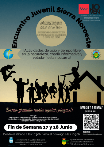 DÍA: 17 de junio; HORA: Desde el sábado, 17 de junio, a las 16.30 h. hasta el domingo, 18 de junio, a las 16.30 h. LUGAR: Refugio La Rodela; PÚBLICO: jóvenes de Soto del Real y Guadalix de la Sierra; INSCRIPCIONES: obligatorias juventud@ayto-sotodelreal.es El objetivo será realizar una labor de integración y socialización a través de […]