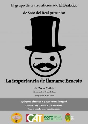 DÍA: 25 de junio; HORA: 19:30 h; LUGAR: C.A.T; PÚBLICO: público juvenil y adulto; ENTRADA: 5€ EN MUTICKEROS.COM; Grupo de teatro aficionado “El Bastidor” de la Asociación Chozas de la Sierra, representa esta divertida obra de Oscar Wilde. Dirección: José Bernardo Luna Adaptación: Ana Aranda