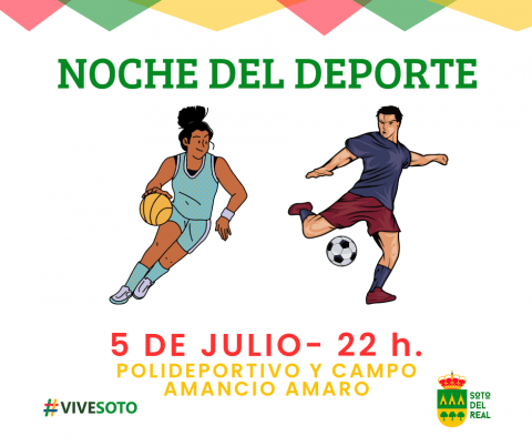 DÍA: 5 de julio; LUGAR: campo municipal Amancio Amaro; HORA: a partir de las 22:00 h; Noche del deporte en Soto del Real El próximo miércoles, 5 de julio, se ha organizado la noche del deporte en el campo de fútbol y el polideportivo municipal Amancio Amaro a partir de las 22.00 h., a […]