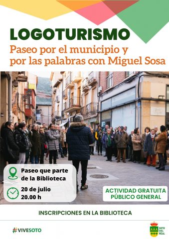 LOGOTURISMO: PASEO POR EL MUNICIPIO Y POR LAS PALABRAS DÍAS: 20 de julio; HORARIO: 20:00 h. LUGAR: Centro Cultural Pedro de Lorenzo, biblioteca; PÚBLICO: Público general; INSCRIPCIONES: gratuitas en la biblioteca; Es una actividad innovadora de turismo cultural basada en el idioma. Consiste en realizar una ruta por el municipio basada en las palabras pensada […]