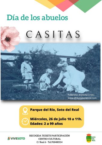 DÍA: 26 julio; HORA: 10:00 a 11:00 h; LUGAR: Parque del Río; ENTRADAS: gratuitas hasta completar aforo. Recogida de tickets de participación en el Centro Cultural "Para el día de los abuelos y las abuelas qué mejor manera de celebrarlo que pasando tiempo con sus nietos y jugando. En el parque del río entre árboles […]