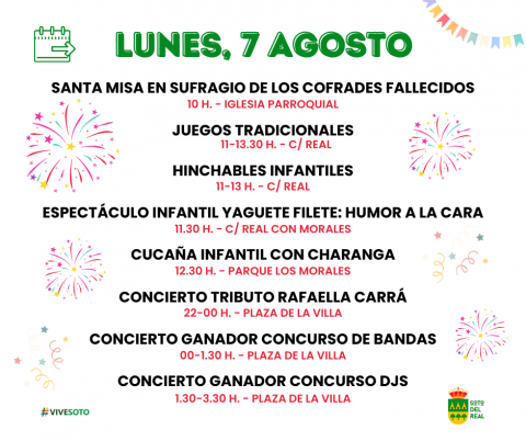 Juegos tradicionales 11:00-13:30 h. Hinchables Cucaña Infantil amenizada por la Charanga 12:30 h. Parque de los Morales Espectáculo infantil Plaza de la Villa Concierto Tributo Rafaella Carrá 22:00 h. Plaza de la Villa Concierto ganador Concurso de Bandas Plaza de la Villa Concierto ganador Concurso DJs Plaza de la […]