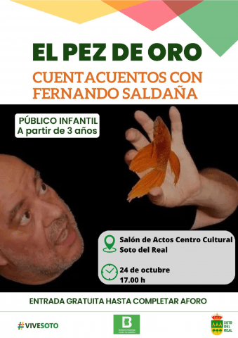 DÍA: 24 de octubre; HORA: 17:00 h; LUGAR: Salón de actos del Centro Cultural; ENTRADA: Entrada gratuita hasta completar aforo; PÚBLICO: Infantil, a partir de 3 años; El pescador lanzó las redes al mar... ¡Y nada! Volvió a arrojarlas y... ¡Un pez, un pez diminuto, apenas un bebé, se había quedado atrapado en su centro. El marinero […]