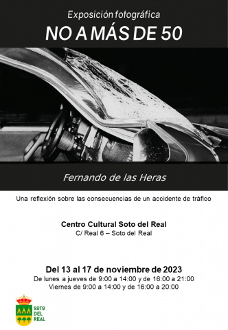 DÍAS: 13 al 17 de noviembre; HORA: lunes a jueves de 9:00 a 14:00 h y de 16:00 a 21:00 h / viernes de 9:00 a 14:00 h y de 16:00 a 20:00 h; LUGAR: Sala de exposiciones del Centro Cultural.