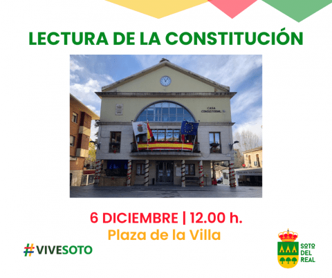 DÍA: miércoles 6 de diciembre; HORA: 12:00 h; LUGAR: Plaza de la Villa. Lectura colectiva de la Constitución.
