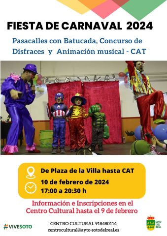 DÍA: 10 febrero; LUGAR: Plaza de la Villa hasta el C.A.T.; HORA: 16:30 a 20:00 h: 16:30 h.- Batukada Yelmo Bloko_Comparsas _Plaza de la Villa; 17:00 a 17:30 h.- Pasacalles Batukada y Comparsas desde la Plaza hasta el CAT.; 17:30 a 20:30 h.- Animación musical - CAT; 18:00 h.- Concurso de Disfraces. FORMULARIO INSCRIPCIONES INFANTILES INDIVIDUALES […]