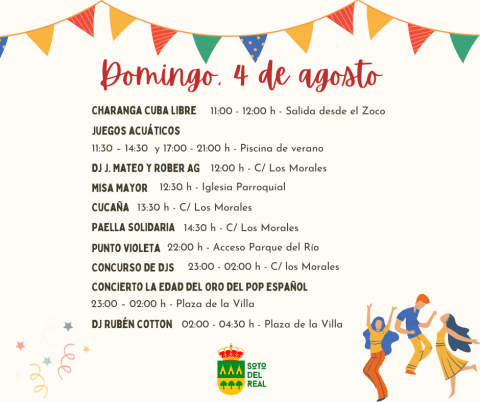 Charanga Cuba Libre 11:00 - 12:00 h. Comienzo en el Zoco Juegos acuáticos 11:30 – 14:30 h. Piscina de Verano Dj J. Mateo y Rober AG 12:00h. calle Los Morales Misa Mayor 12:30 h. Iglesia Parroquial Cucaña amenizada por la charanga 13:30 h. Calle los Morales Paella solidaria 14:30 h. […]