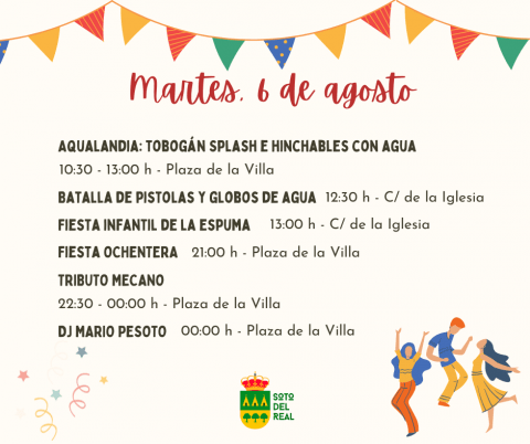 Aqualandia: tobogán Splash e hinchables con agua 10:30 - 13:00 h. Plaza de la Villa Batalla de pistolas y globos de agua 12:30 h. calle de la Iglesia Fiesta infantil de la espuma 13:00 h. calle de la Iglesia Día del niño - Atracciones a 1,5€ en el recinto ferial Todos los […]