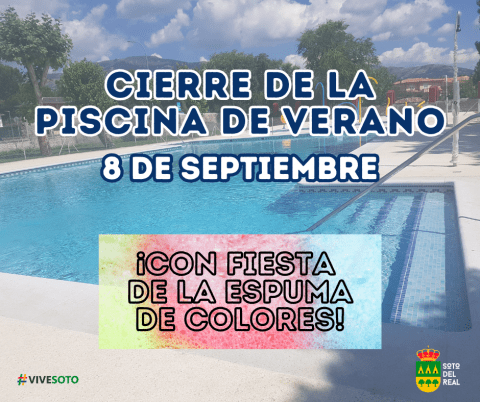 Último día de la apertura de la piscina de verano de Soto, con su horario habitual de 11.00 a 20.00 h. Para despedir la temporada, Eventos Azero y Merendero Abuelo Trobas han organizado una fiesta de la espuma de colores, de 12.00 a 14.00 h. en la explanada del CAT. ¡No te lo pierdas, lo […]