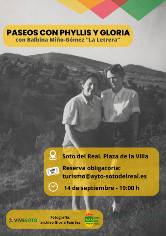 DÍA: 14 septiembre; HORA: 19:00 h; LUGAR: Oficina de Turismo; INSCRIPCIONES: gratuitas y obligatorias en turismo@ayto-sotodelreal.es Una nueva temporada, y ya van cuatro, convocamos a la figura de Gloria Fuertes, esta vez acompañada por su pareja durante muchos años en Chozas de la Sierra la hispanista y filántropa Phyllis Turnbull. De la mano de ambas […]