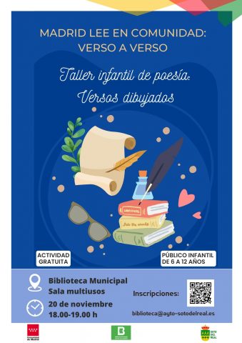 DÍA: miércoles 20 de noviembre; HORA: 18:00 h; LUGAR: Sala multiusos, Centro Cultural; INSCRIPCIONES: Actividad gratuita inscripción previa; PÚBLICO: Público infantil de 6 a 12 años; En esta sesión, después de la escucha de versos recitados, las niñas y niños participantes aprenderán a hacer un caligrama, donde las letras toman forma y la poesía no […]