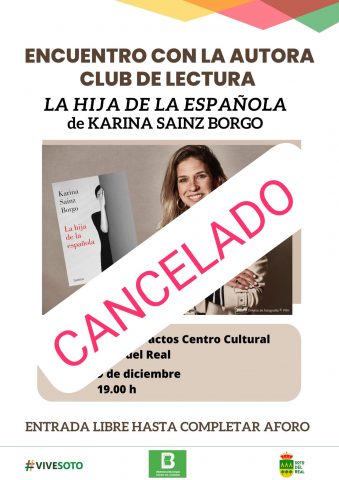 DÍA: 9 diciembre; HORA: 19:00 h; LUGAR: Salón de Actos Centro Cultural; ENTRADA: libre hasta completar aforo. Encuentro con los clubes de lectura pero abierto al público en general con la escritora Karina Sainz Borgo para hablar de su libro La hija de la española y de toda su carrera literaria.