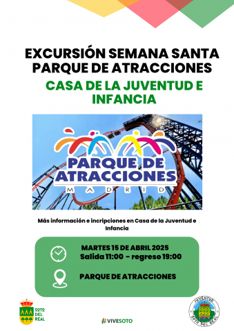 DESCRIPCIÓN DE LA ACTIVIDAD El martes 15 de abril de 2025 la CASA DE LA JUVENTUD E INFANCIA se va de excursión al PARQUE DE ATRACCIONES. Se trata de una excursión conjunta con la Casa de la Juventud de Miraflores de la Sierra. ¿CUÁNDO Y DÓNDE? Hora de salida: 11:10 del parking del C.P. Chozas […]