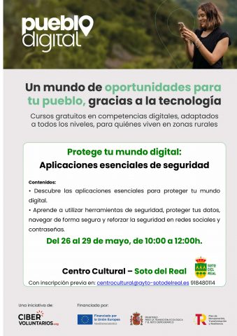 FECHA: 26 a 29 de mayo; HORA: 10:00 a 12:00 h; LUGAR: Centro cultural; ENTRADA: GRATUITO – PREVIA INSCRIPCIÓN Aprendizaje de las Aplicaciones esenciales de seguridad digital Contenidos: • Descubre las aplicaciones esenciales para proteger tu mundo digital. • Aprende a utilizar herramientas de seguridad, proteger tus datos, navegar de forma segura y reforzar la […]