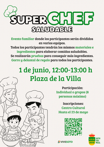 SUPER CHEF SALUDABLE 1 JUNIO DE 12:00 A 13:00H – PLAZA DE LA VILLA DE SOTO DEL REAL Se trata de un evento familiar donde los participantes serán divididos en varios equipos diferenciados con delantales y gorros de colores. Tendrán los mismos materiales e ingredientes básicos en su mesa de trabajo para elaborar bocatines, sándwiches […]
