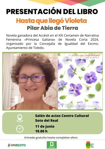 TÍTULO DEL EVENTO: Presentación del libro “Hasta que llegó Violeta” de Pilar Abia de Tierra TIPO DE ACTIVIDAD: Presentación de libro FECHA: Miércoles 11 de junio HORA: 19:00-21:00h LUGAR: Salón de actos Centro Cultural