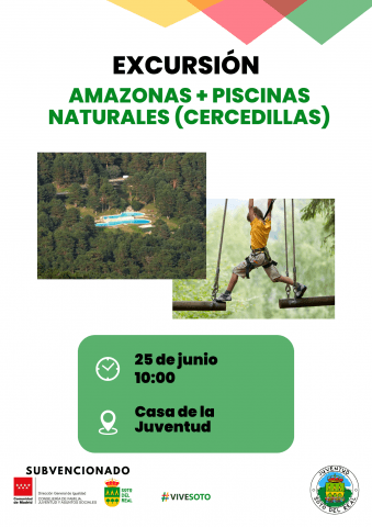 DÍA: 25 de junio; HORA: 10:00 h; LUGAR: Casa de la Juventud; PÚBLICO: 8 a 17 años (desde nacidos 2015); PRECIO: 22€; INSCRIPCIONES: obligatoria en la Casa de la Juventud o en juventud@ayto-sotodelreal.es rellenando el siguiente formulario Excursión de día completo con salida desde Soto del Real en autobús. Primero realizaremos la actividad de […]