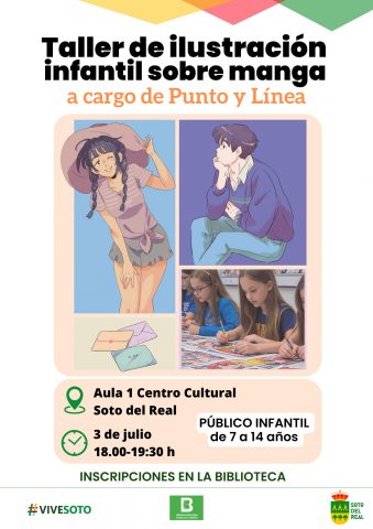 TÍTULO DEL EVENTO: Taller de manga, con Punto y Línea TIPO DE ACTIVIDAD: Taller de ilustración infantil 7-14 años sobre manga FECHA: jueves 3 de julio HORA: 18:00-19:30h LUGAR: Aula 1 Centro Cultural