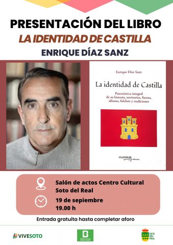Presentación del libro “La identidad de Castilla”, de Enrique Díaz Sanz FECHA: Viernes 19 de septiembre HORA: 19:00 h; LUGAR: Salón de actos Centro Cultural ENTRADA: gratuita hasta completar aforo.