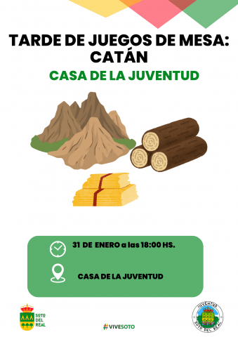 FECHA: 31 de enero; HORA: 18:00 h; LUGAR: Casa de la Juvetud. TARDE DE CATÁN, todo un clasico de nuestra casa de la juventud. Estableceremos varios turnos de partidas para que podamos jugar en varias ocasiones y con participantes diferentes. El objetivo del juego es construir poblados, ciudades y caminos sobre un tablero que es […]